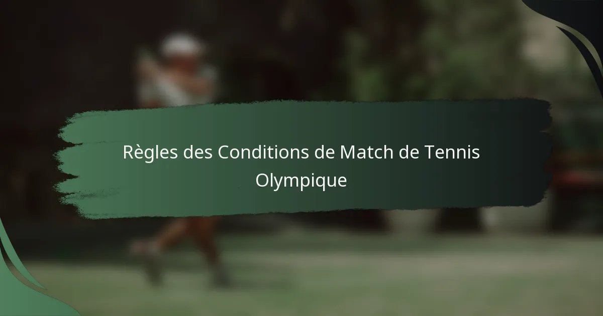 Les conditions de jeu pour le tennis olympique sont définies par le type de surfaces de court, les impacts météorologiques et les réglementations sur l’entretien des courts. Ces facteurs influencent considérablement la performance des joueurs et l’expérience globale des matchs.
