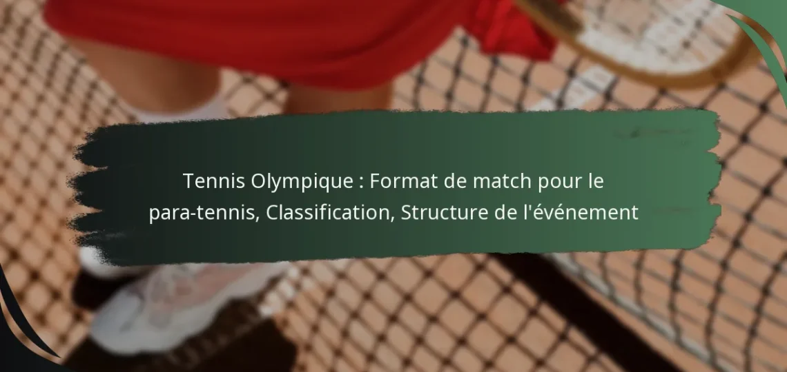 Le para-tennis aux Jeux Olympiques présente un format de match structuré conçu pour accueillir les athlètes en situation de handicap tout en préservant l’essence du sport. La classification repose sur une évaluation approfondie des capacités physiques et fonctionnelles des athlètes, garantissant une compétition équitable. La structure de l’événement comprend des formats de simples et de doubles, progressant à travers des tours d’élimination pour culminer en finales pour la contention des médailles.