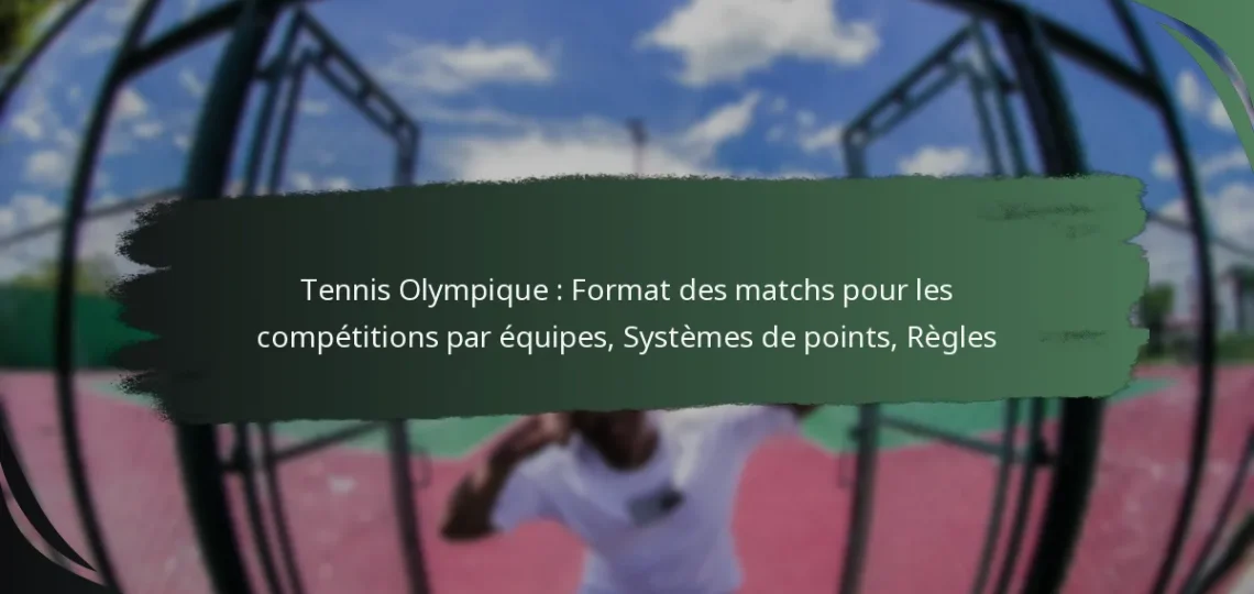 La notation dans le tennis olympique suit des formats spécifiques qui diffèrent des tournois traditionnels, en particulier dans les compétitions par équipes. Comprendre ces systèmes de notation est essentiel pour saisir comment les matchs sont joués et remportés pendant les Jeux Olympiques.