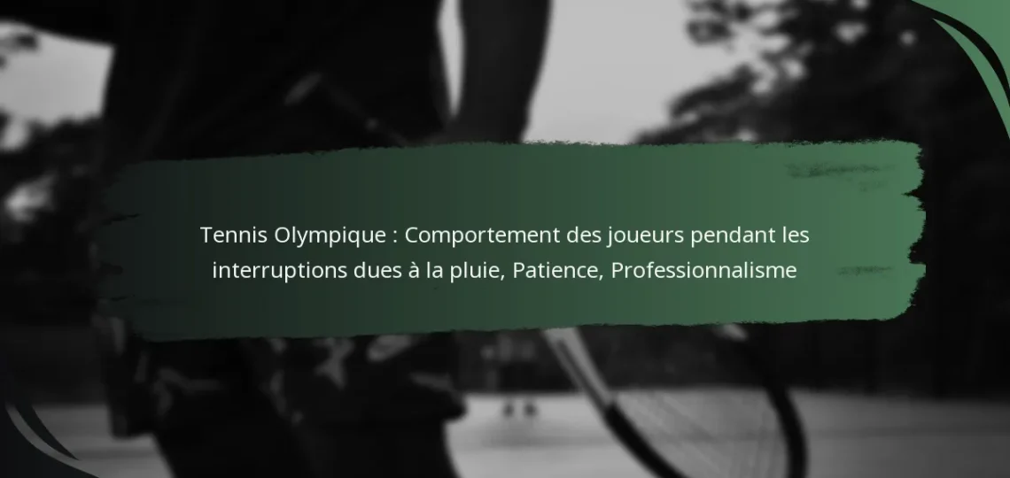 Dans le tennis olympique, la conduite des joueurs pendant les interruptions dues à la pluie est régie par les règles établies par la Fédération Internationale de Tennis (ITF), qui soulignent la nécessité de patience et de professionnalisme. Les athlètes sont encouragés à utiliser des techniques de régulation émotionnelle et de fair-play pour naviguer à travers ces interruptions, s’assurant qu’ils restent calmes et concentrés sur leur performance. En utilisant des stratégies psychologiques telles que la visualisation et la relaxation, les joueurs peuvent gérer efficacement l’imprévisibilité des retards liés aux conditions météorologiques tout en préservant leur intégrité sur le court.