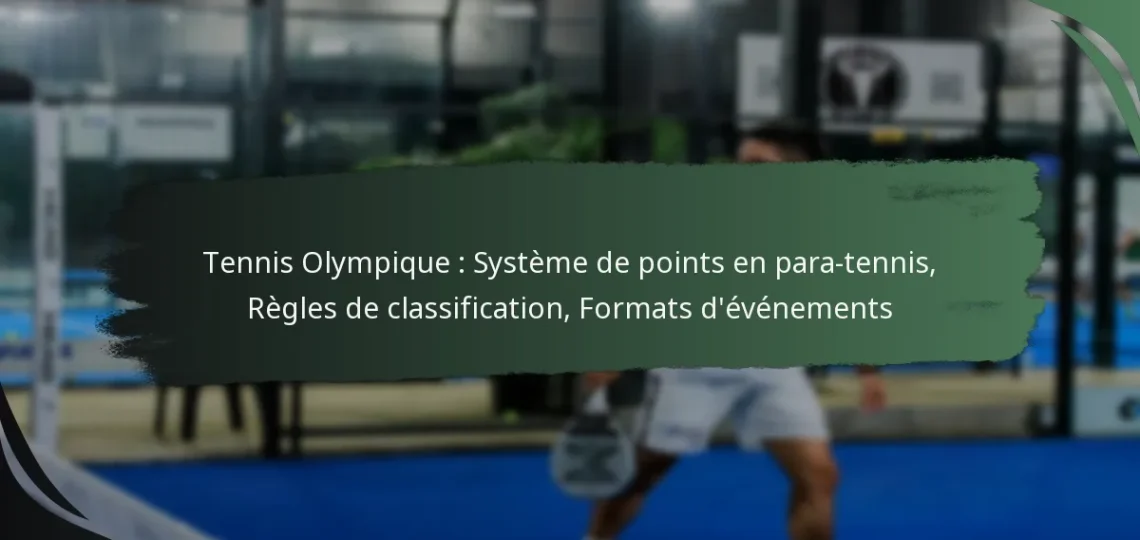 Le para-tennis aux Jeux Olympiques intègre des règles de score uniques qui adaptent le tennis traditionnel pour accueillir les athlètes en situation de handicap, garantissant à la fois compétitivité et inclusivité. Les règles de classification jouent un rôle crucial dans la création de confrontations équitables en catégorisant les joueurs en fonction de leurs capacités physiques. Les formats d’événements, qui incluent des compétitions en simple, en double et en mixte, favorisent également un environnement inclusif pour les athlètes de différentes classifications et compétences.